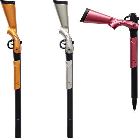 Ручка гелева. Пластиковий кольоровий корпус в формі рушниці, товщина лінії 0,38 мм, змінний стержень. Довжина ручки 18,5 см Колір синій.