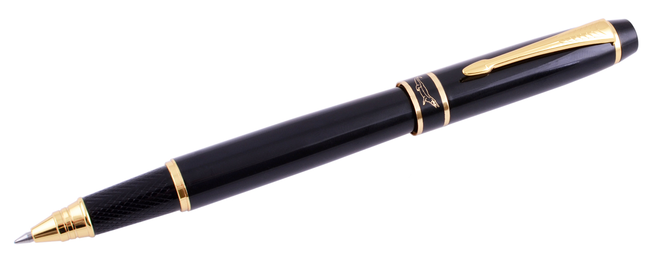Элегантная шариковая ручка в классическом исполнении — корпус глубокого черного цвета с изысканными золотыми элементами. Она станет незаменимым аксессуаром для офиса, переговоров и деловой переписки.