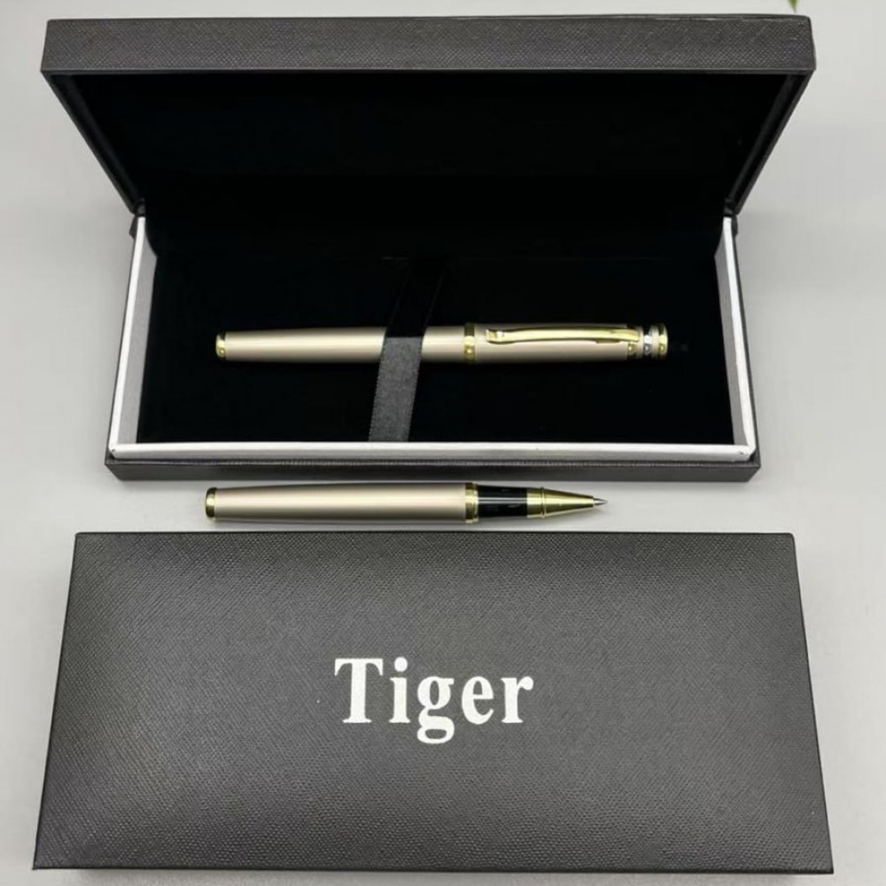 Элегантная подарочная ручка Tiger — это сочетание классики и современного дизайна. Корпус выполнен в утонченном серебристом цвете с золотистыми декоративными элементами, что придает ручке солидный и изысканный вид.