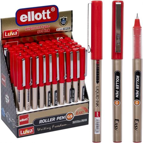 Ручка роликова з гелевим чорнилом. Товщина лінії 0,5мм. Матеріал корпусу пластмаса. В упаковці 50 штук. Колір червоний.