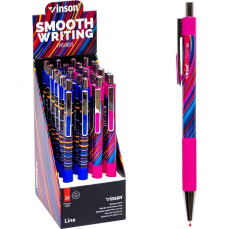 Ручка кулькова з чорнилом на масляній основі, кольоровий пластиковий корпус резиновим грипом для зручного утримання в руці, товщина лінії 0,7 мм, колір синій.