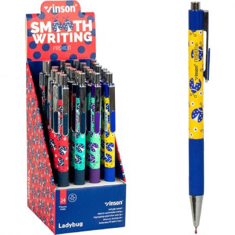 Ручка кулькова з чорнилом на олійній основі, кольоровий пластиковий корпус з м'яким грипом, колір синій.товщина лінії 0,7 см