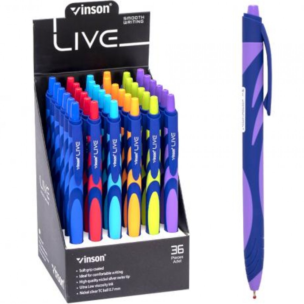 Ручка кулькова з чорнилом на олійній основі, кольоровий пластиковий корпус, синій колір. Товщина лінії 0,7 см