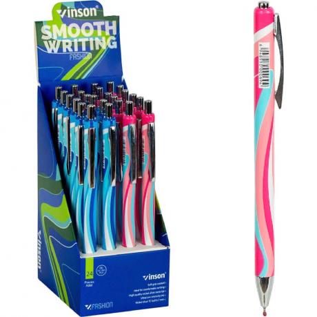 Ручка кулькова з чорнилом на олійній основі, кольоровий пластиковий корпус з м'яким грипом, колір синій.товщина лінії 0,7 см
