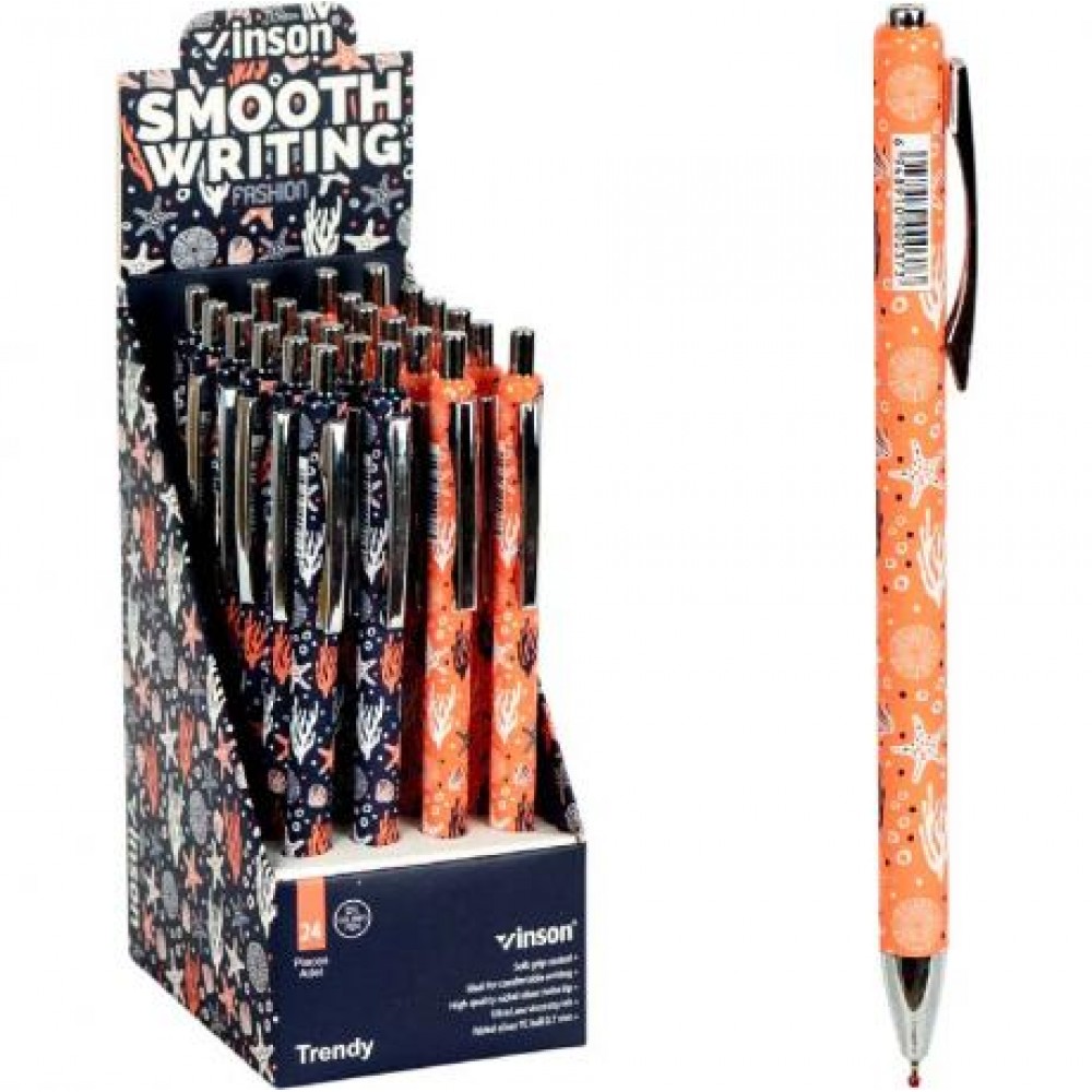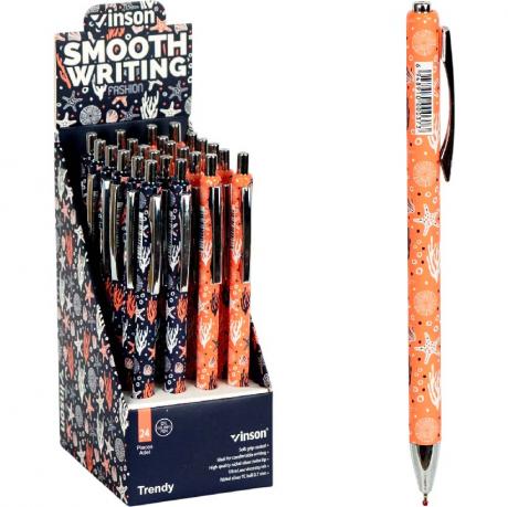 Ручка кулькова з чорнилом на олійній основі, кольоровий пластиковий корпус з м'яким грипом, колір синій.товщина лінії 0,7 см