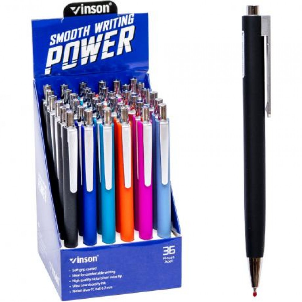 Ручка кулькова з чорнилом на олійній основі, кольоровий пластиковий корпус з покриттям soft-touch, синій колір. товщина лінії 0,7 см