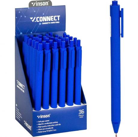 Ручка кулькова з чорнилом на олійній основі, кольоровий пластиковий корпус з м'яким грипом, колір синій.товщина лінії 0,7 см