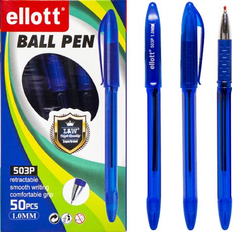 Ручка кулькова на масляній основі. Товщина лінії 1,0 мм. Матеріал корпусу пластмаса. В упаковці 50 штук. Колір синій.