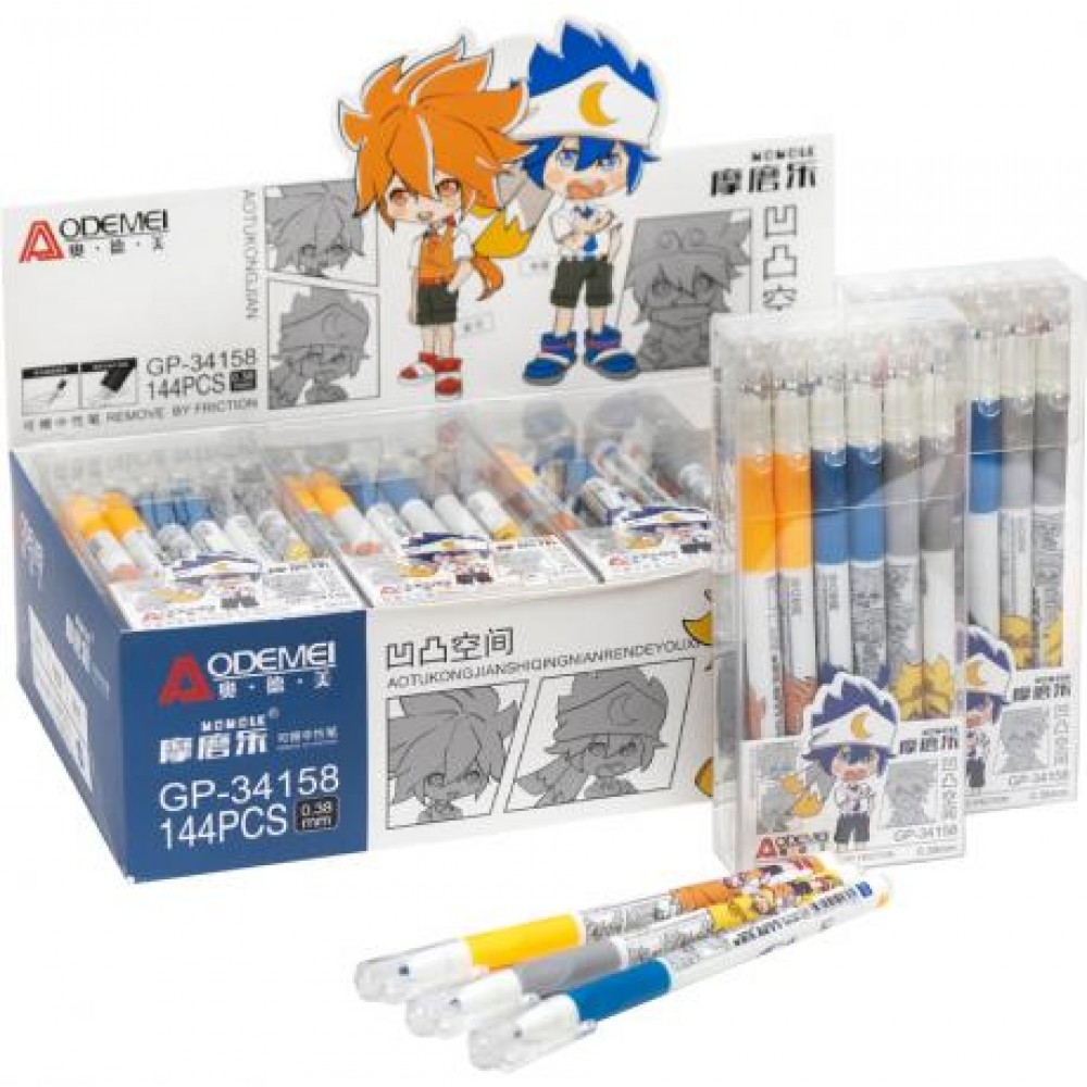 Ручка гелева "пише-стирає". Пластиковий кольоровий з малюнком корпус. Товщина 0,38 мм. Змінний стрижень. Колір синій.
