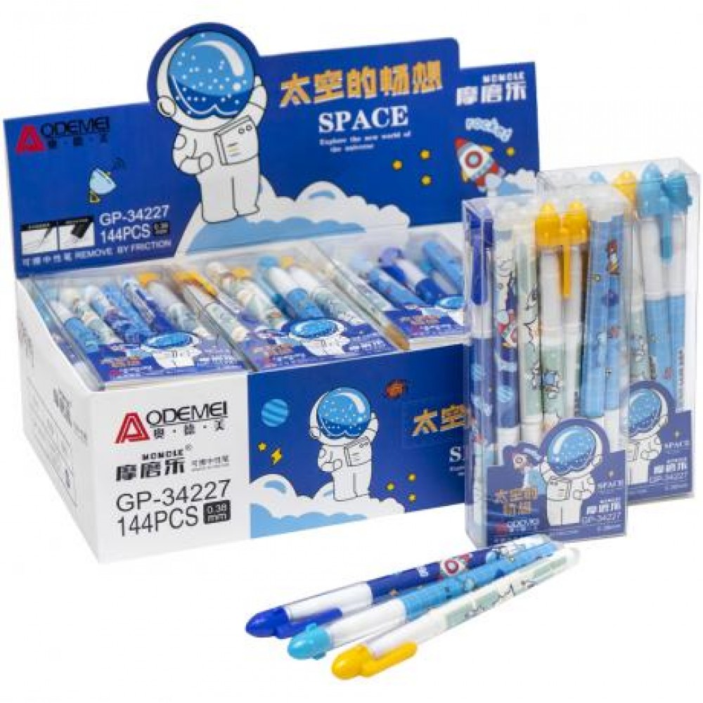 Ручка гелева "пише-стирає". Пластиковий кольоровий з малюнком корпус. Товщина 0,38 мм. Змінний стрижень. Колір синій .