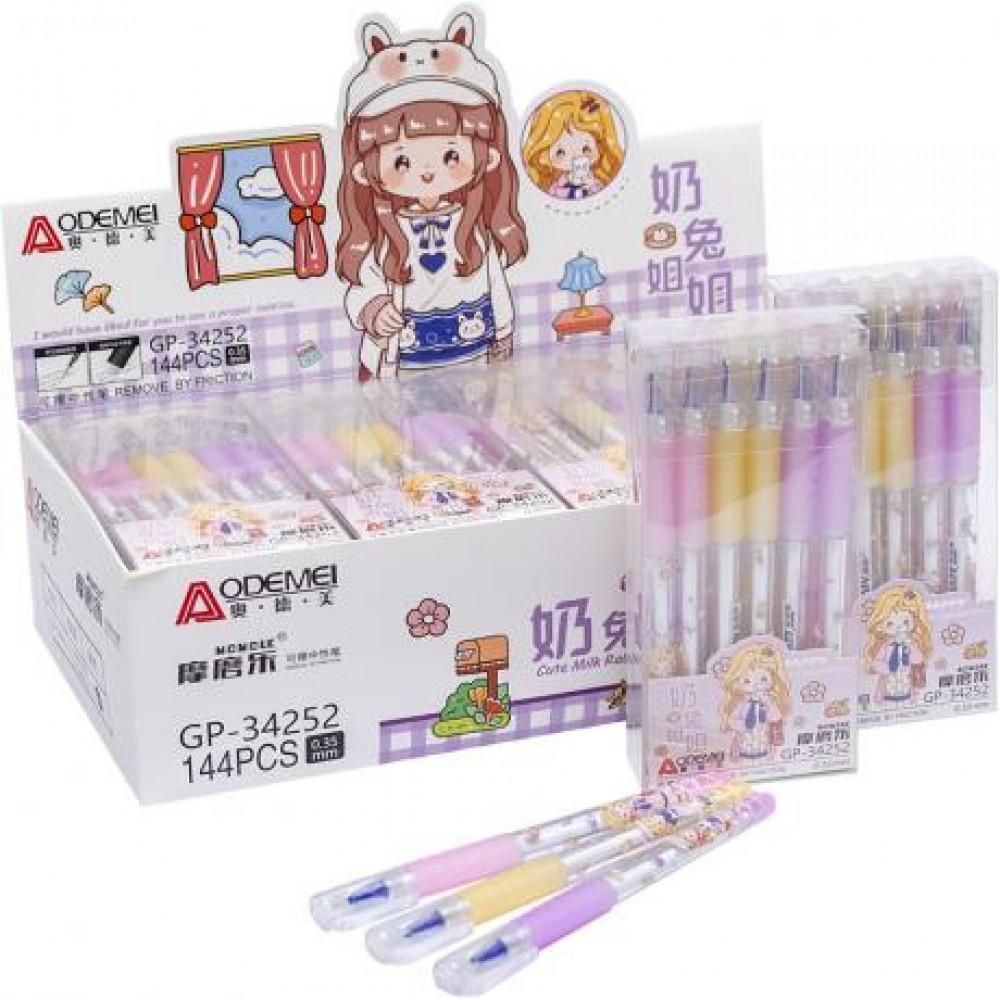 Ручка гелева "пише-стирає". Пластиковий кольоровий з малюнком корпус, гумовий грип. Товщина 0,35 мм. Змінний стрижень. Колір синій.