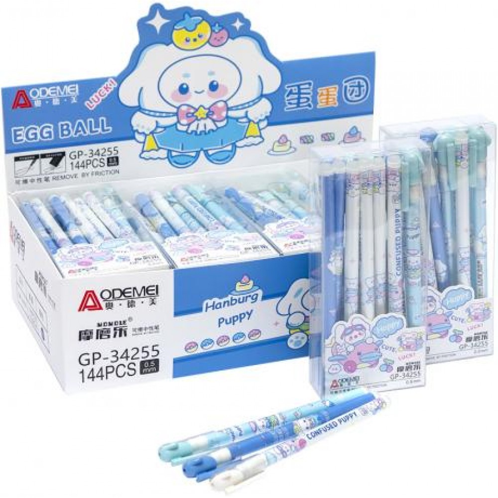 Ручка гелева "пише-стирає". Пластиковий кольоровий з малюнком корпус. Товщина 0,5 мм. Змінний стрижень. Колір синій.