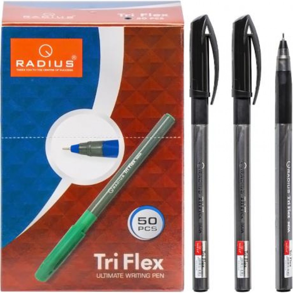 Ця кулькова ручка RADIUS "TriFlex PL" має масляну основу і товщину лінії 1.0 мм. Корпус ручки виготовлений з тригранного пластику, що не прозорий, і має гумовий грип. Упаковка містить 50 штук чорного кольору.