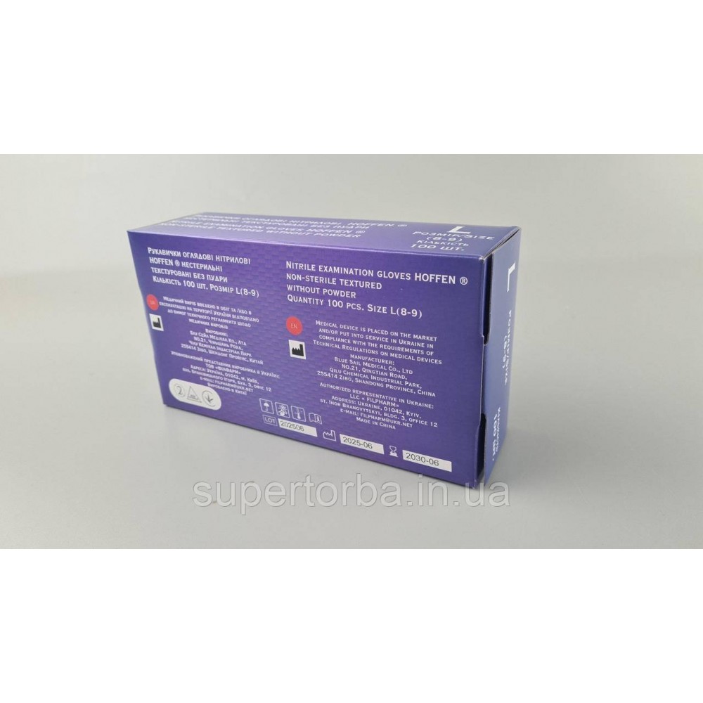 Рукавички нітрилові медичні мають високу стійкість до кислот, лугів, розчинників, олив. Рукавички з нітрилу не викликають подразнення шкіри рук і захищають їх від агресивних середовищ. Нітрилові рукавички належать до рукавичок загального призначення, забезпечують високий рівень комфорту, захисту та характеризуються чудовими експлуатаційними якостями. Переваги: Не містять натуральний латекс і каучук, що запобігає виникненню алергії. Без тальку (присипки), що мінімізує висушувальну дію на шкіру. Рукавички мають гладку поверхню, яка забезпечує чудову чутливість. Рельєфна поверхня кінчиків пальців забезпечує надійніше захоплення. Рельєфний малюнок манжети забезпечує підвищену міцність і зручність надягання. Універсальні для обох рук.