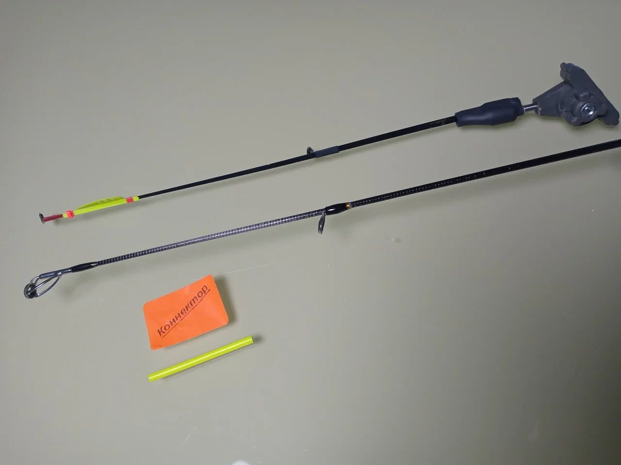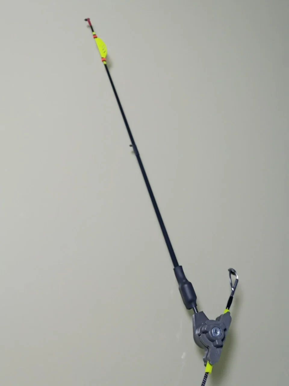 Данное крепление,позволяет осуществить монтаж,без съема тюльпана на конце удилища.