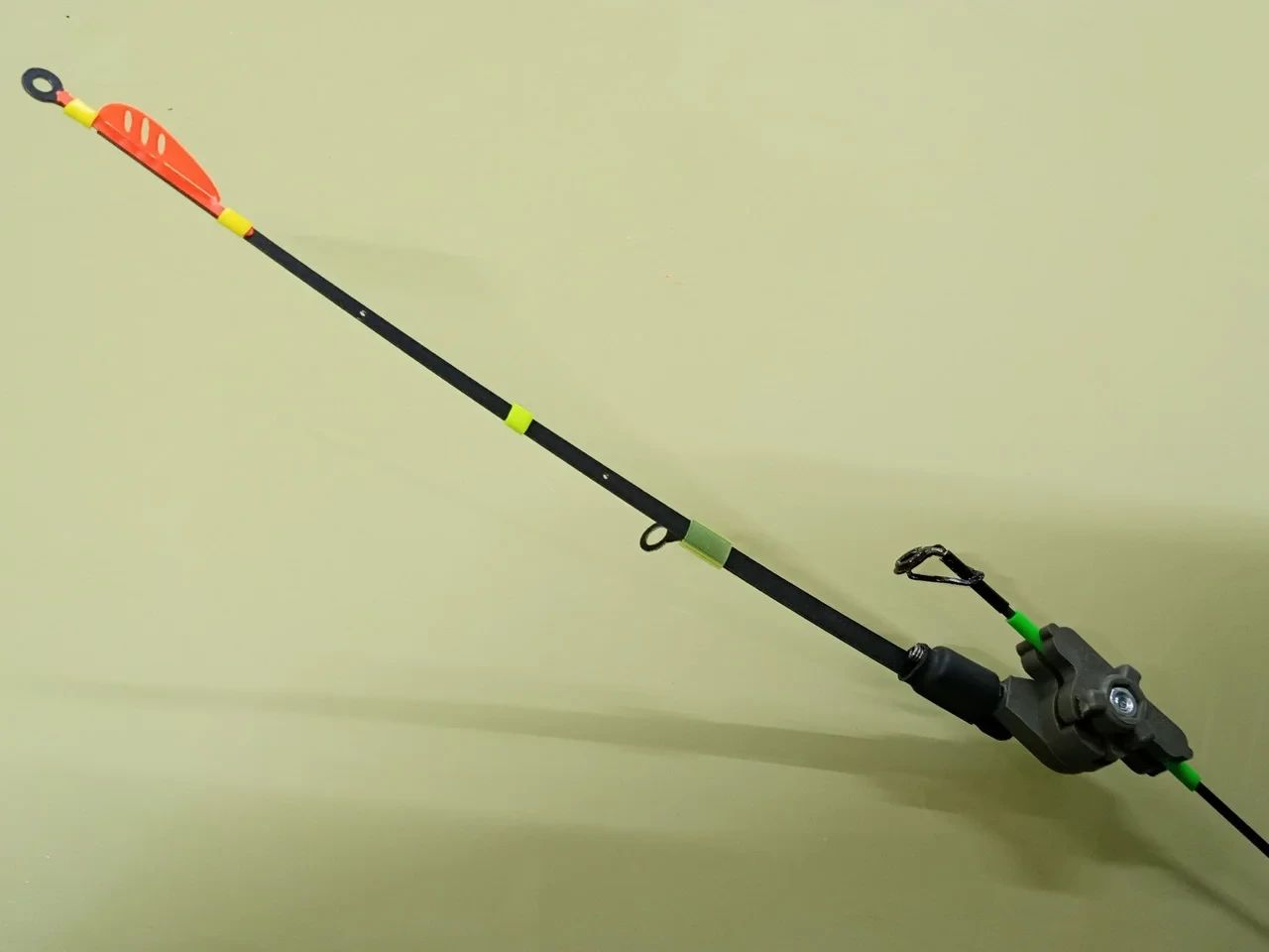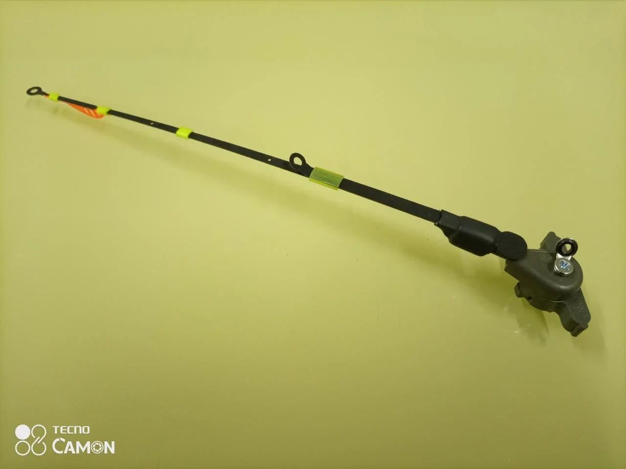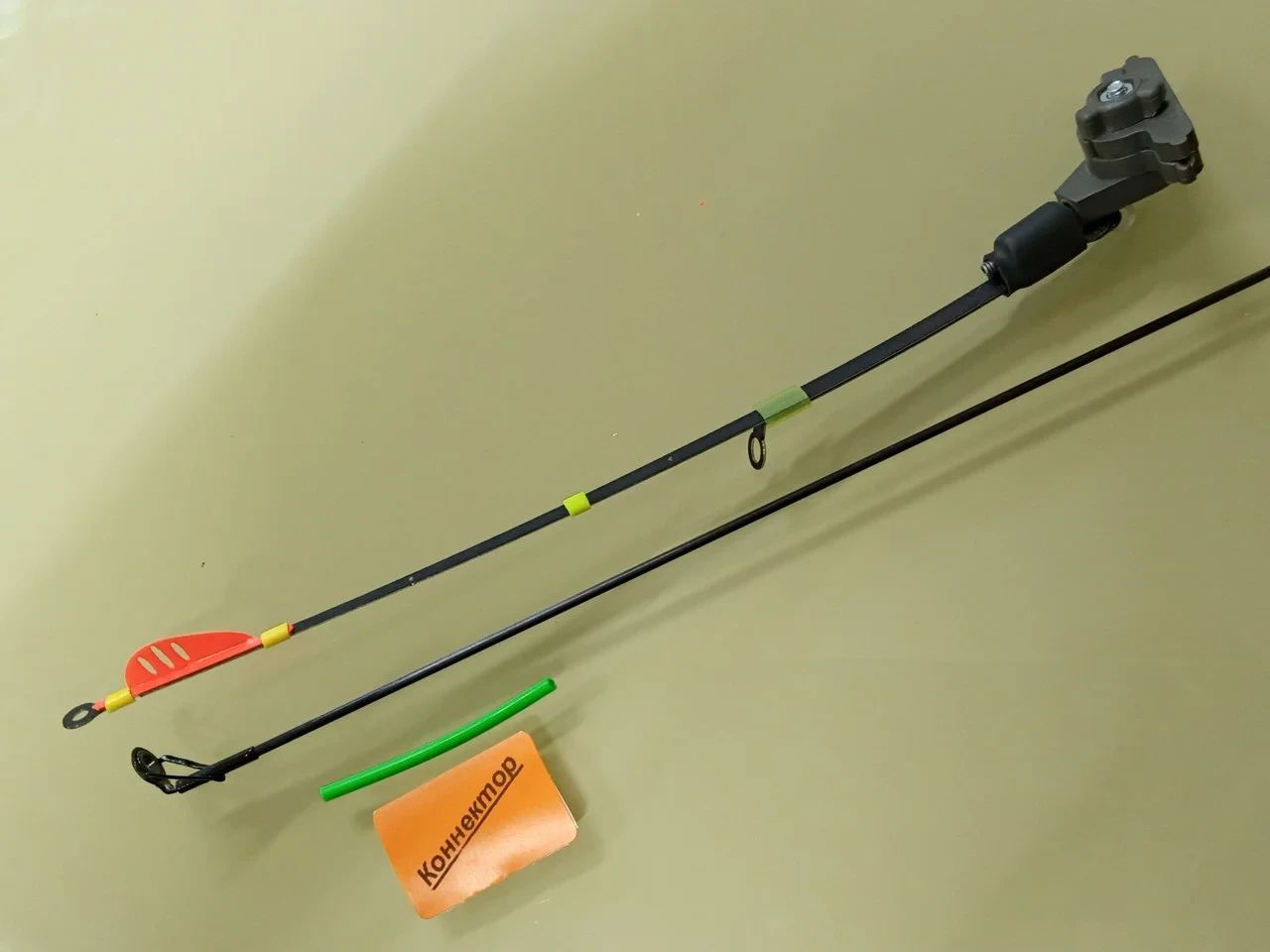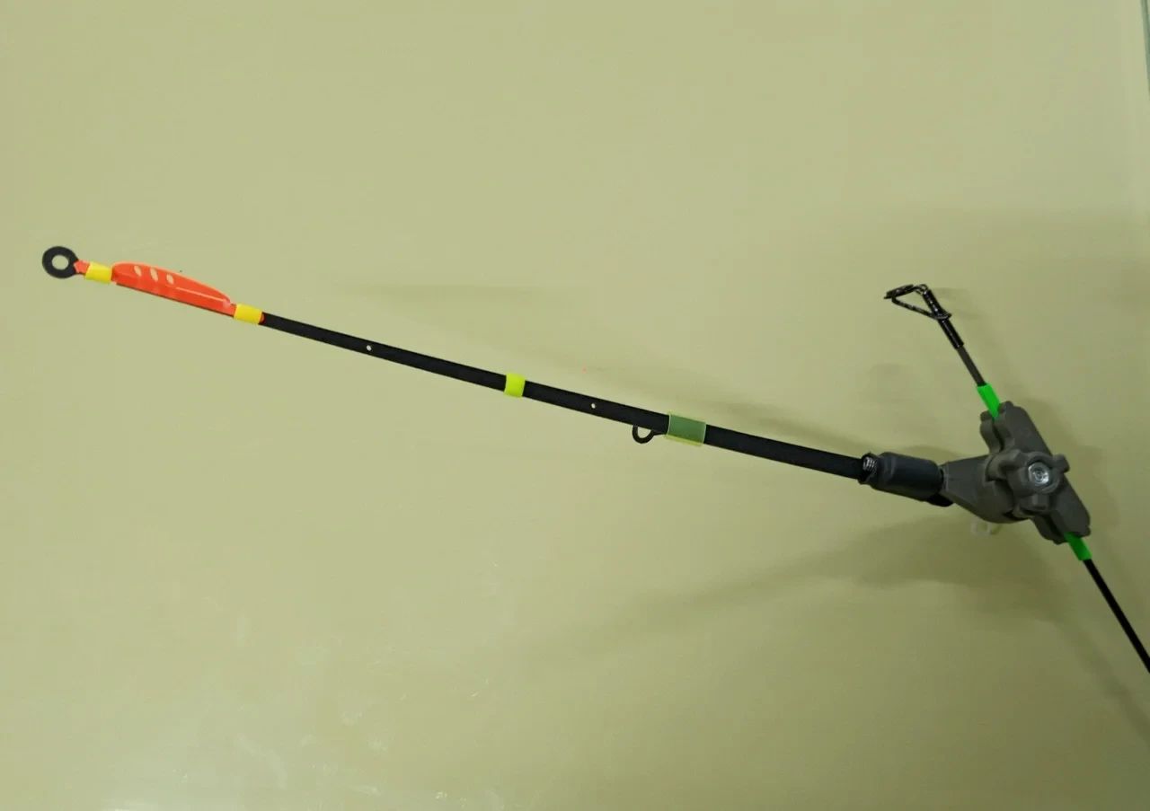 Данное крепление,позволяет осуществить монтаж,без съема тюльпана на конце удилища.