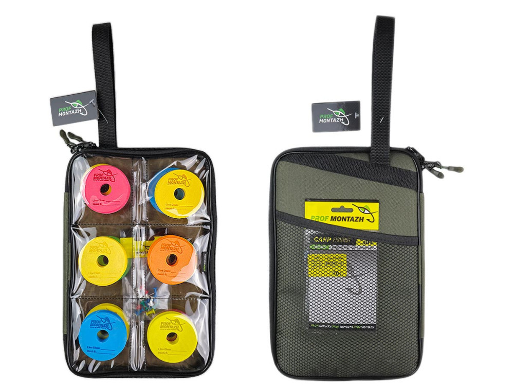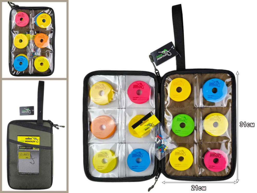 Поводочница с прозрачным верхом вмещает 12 EVA шпуль для поводков. На каждой шпуле для удобства выгравировано поле для указания диаметра лески и № крючка. Благодаря прозрачным карманам, рыбак быстро может выбрать нужный поводок. На такой EVA шпуле удобно хранить длинные поводки до 2 метров, что особенно актуально для фидерной рыбалки, и карповой ловли на ZIG-RIG. Сам органайзер выполнен из надежного прозрачного ПВХ и ткани Oxford. Для удобной транспортировки предусмотрена ручка. На обратной стороне органайзера большой карман на сетке, его размер: 19х20см.