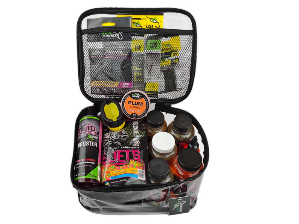 Прозрачный органайзер Crystal Bag - прекрасно подходит для разнообразных рыболовных аксессуаров, насадок, бойлов, дипов, монтажей и.т.д. Основное преимущество подобных органайзеров, возможность легко контролировать содержимое сумки. Изготовлен органайзер из практичного прозрачного ПВХ материала. Такой материал легко моется и не накапливает запахи. Для дополнительного удобства и функциональности внутри органайзера предусмотрен кармашек на сетке.