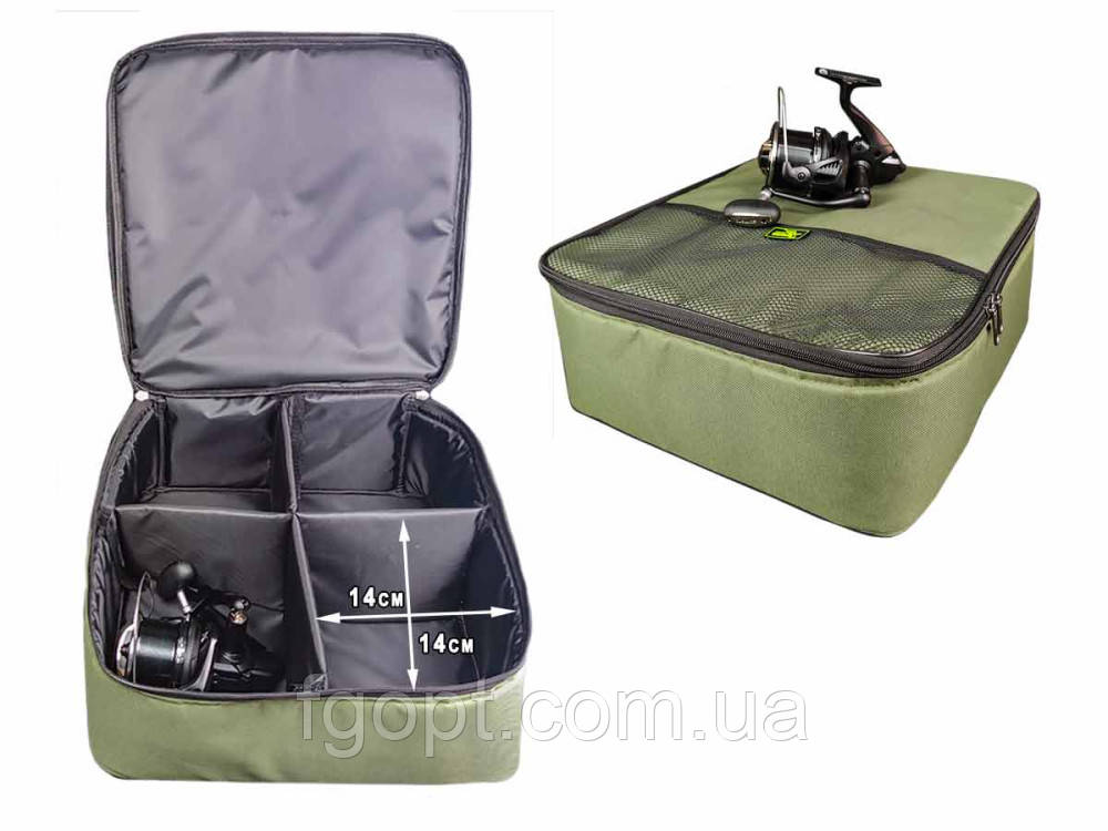 Сумка-чехол на 4 катушки до 12 000 - предназначена для безопасного хранения и транспортировки безинерционных катушек для карповой или фидерной ловли. На крышке сумки предусмотрен кармашек. Для удобной транспортировки имеется эргономичная прорезиненная ручка. Сумка изготовлена из прочной, водостойкой ткани PVC OXFORD D600. Сумка с легкостью вмещает 4 катушки размером до 12 000 по нумерации Shimano.