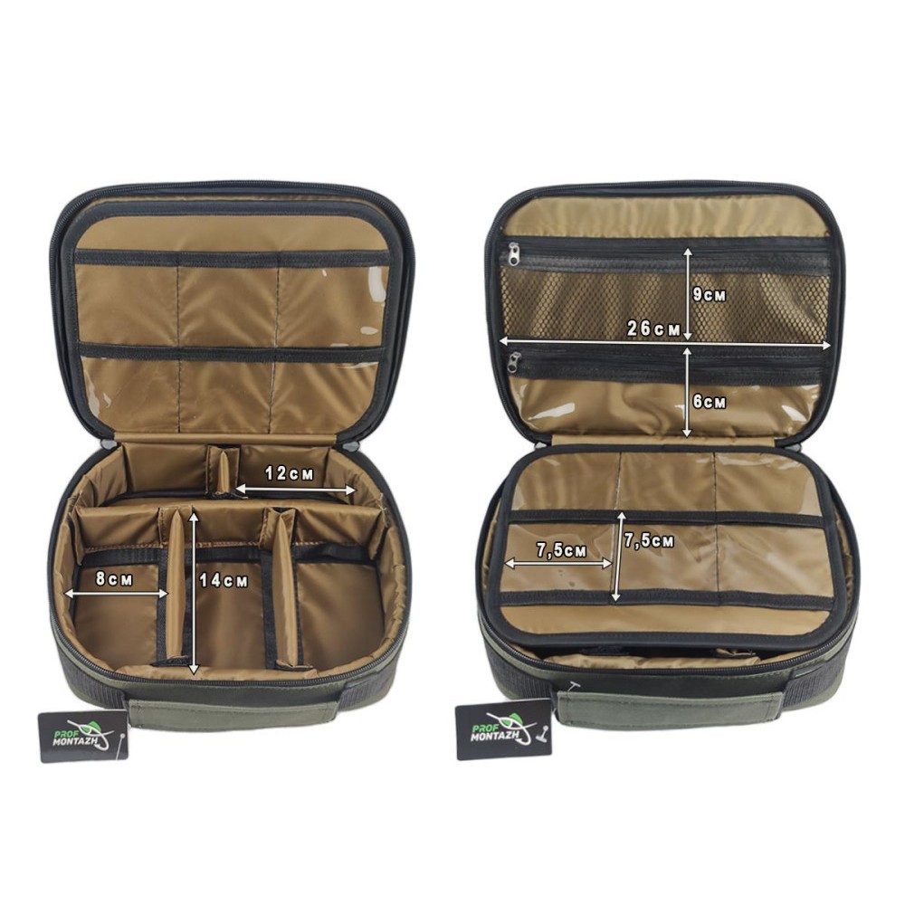 Сумка-органайзер Tackle Bag Mini - это универсальная сумка для аксессуаров и кормушек в фидерной ловле, для флет кормушек, грузов и монтажей в карповой ловле на Flat или для поплавочной ловли. В нижней части сумки разместились 5 отсеков, каждая перегородка отсека имеет 3 точки крепления поэтому вы можете быть уверены, состав каждого отсека не перемешается друг с другом. Средняя часть выполнена на жестком водостойком картоне и насчитывает 12 прозрачных карманов для крючков, фурнитуры или поводочной лески. На верхней крышке предусмотрены 2 средних кармана, для инструмента.