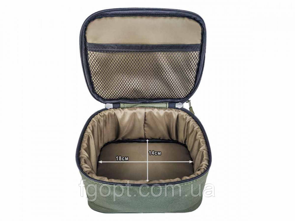 Сумка полужесткая под катушку Reel Case L (20x15x10см) - предназначена для безопасного хранения или транспортировки безинерционных и мультипликаторных катушек. Во внутренней части чехла предусмотрен кармашек для хранения разных мелочей или частей катушки. Для удобной транспортировки имеется эргономичная ручка. Сумка изготовлена из прочной ткани PVC OXFORD D600. Сумка с легкостью вмещает любую мультипликаторную катушку до 400 размера или безинерционную катушку до 7000 размера по нумерации Shimano.