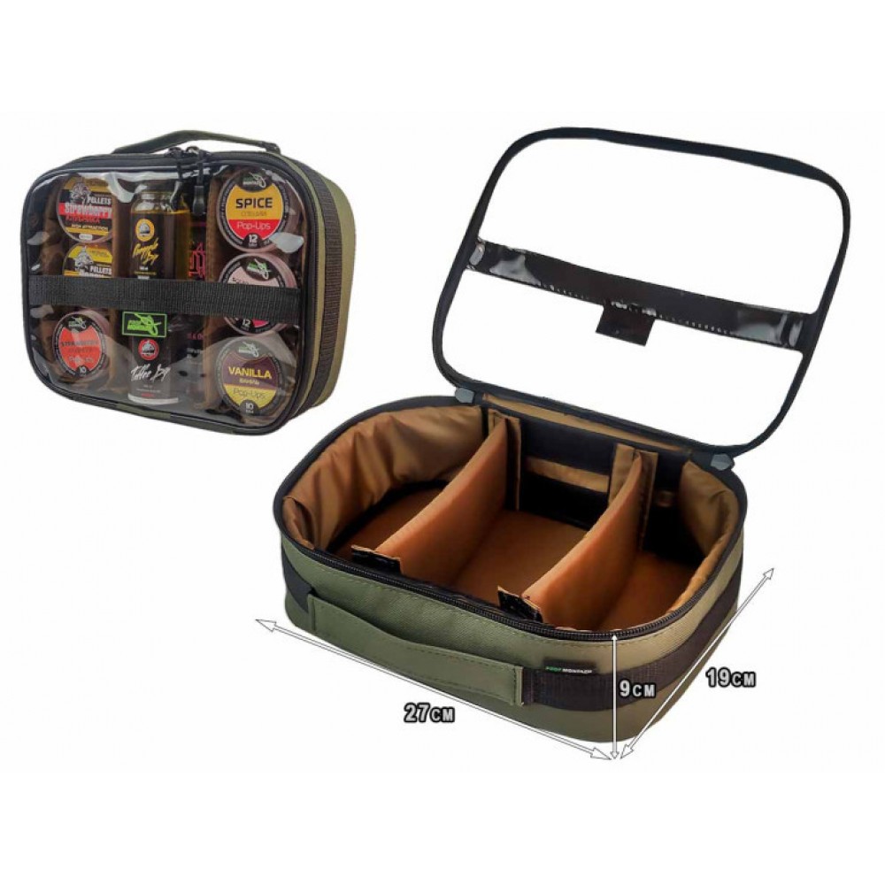 Удобная рыболовная сумка с прозрачным верхом, имеет 2 регулируемые перегородки образуя сумку на 3 отделения. Сумка отлично подходит для транспортировки и хранения различных аксессуаров, насадок, бойлов, бустеров и.т.д для карповой, фидерной или поплавочной ловли. Сумка имеет оптимальный размер: 27х19х8см для разнообразных баночек с pop-ups, бойлами, ликвидами, дипами и.т д. Внутрення подкладка и перегородки выполнены из материала PPE 7мм, благодаря чему сумка имеет повышенную жесткость и хорошо защищает содержимое от ударов. Прозрачный верх позволяет с легкостью контролировать содержимое сумки.
