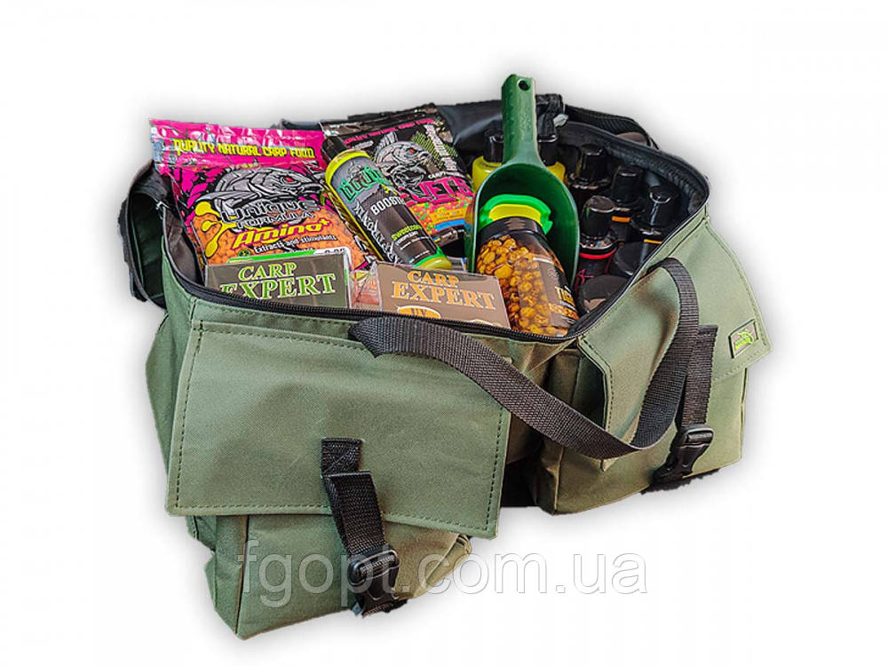 Большая рыболовная универсальная сумка Fishing Bag 2 - изготовлен из прочной, износостойкой ткани PVC OXFORD D600 с подкладкой D75. Сумка очень просторная и вместительная. Отлично подходит для карповой ловли позволяет эргономично сложить прикорму, бустэры, насадки, коробки с готовыми монтажами, некоторые веще, а мелочовку разместить в просторных карманах. Также сумка будет хороша и для спиннинговой ловли, крепкие ручки и наличие ремня через плечо позволяет с комфортом ходить с сумкой по берегу. Сумка с легкостью вмещает 3-4 не маленькие коробки с приманками, термос и бутерброды. Если вы поклонник зимней ловли на жерлицы, в сумку Fishing Bag 2 можно с легкостью вместить до 40 жерлиц в подразобранном виде. Для удобства, сумка комплектуется чехлом для флажков.