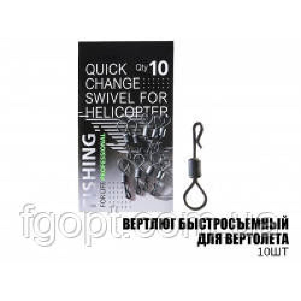 Вертлюг быстросъемный для вертолета (10шт) - изготовлен из высококачественной стали, имеет защитное покрытие PTFE, которое защищает от ржавления и не дает отблесков. Предназначен для быстрого изменения поводков и используется вместе с резиновым отводом. Благодаря увеличенному диаметру уха на вертлюге, свободно скользит по ледкору не застряет и не путается.