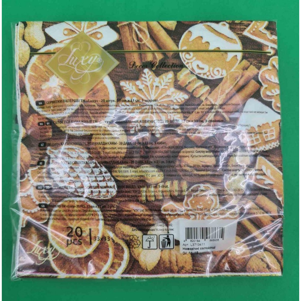 Новогодняя салфетка (ЗЗхЗЗ, 20шт) LuxyНГ Новогодний поцелуй (851) (1 пачка)