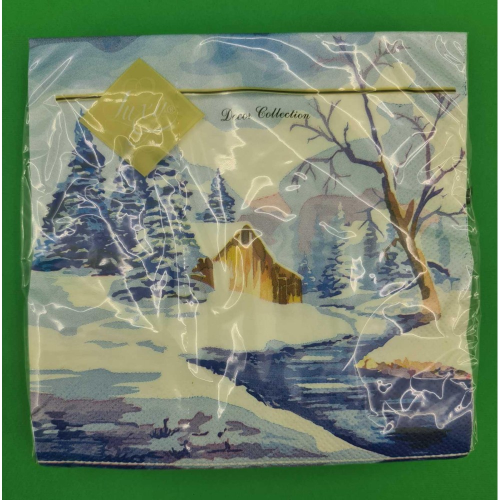 Салфетки бумажнае новогодние(ЗЗхЗЗ, 18шт)"Коллаж декоративный " Luxy (1 пачка)