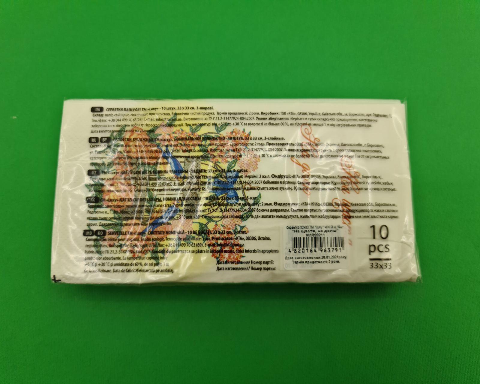 Красивая салфетка (ЗЗхЗЗ, 10шт) Luxy MINI К счастью на долю (2038) (1 пачка)