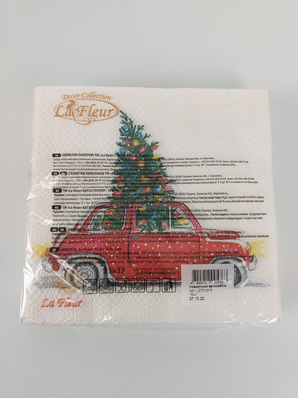 Салфетка двухслойная 33х33 La Fleu