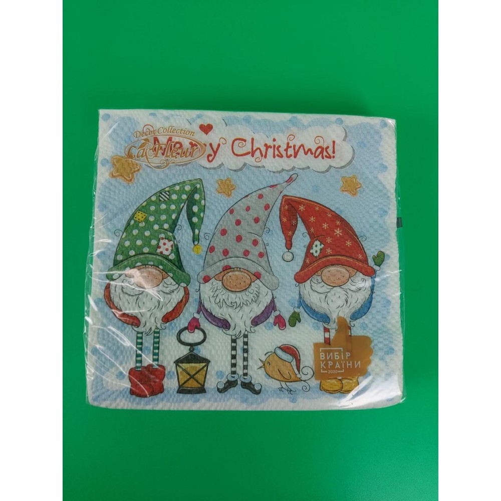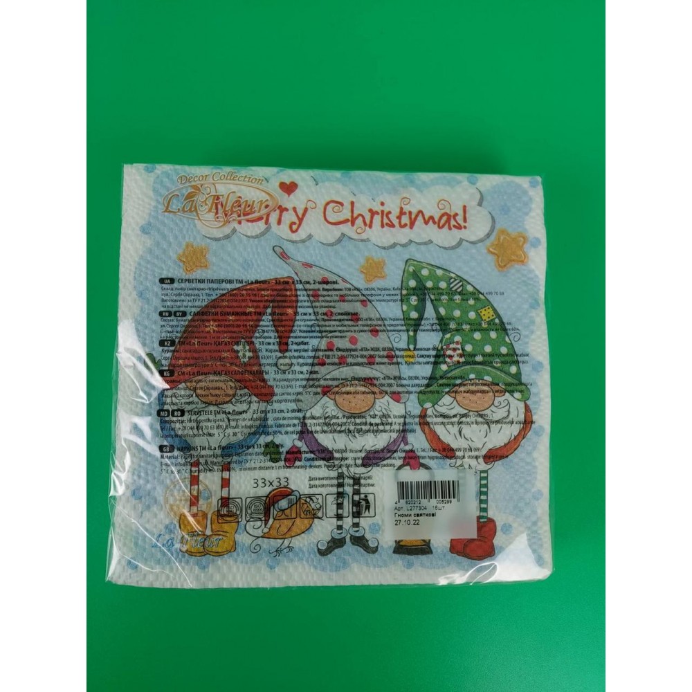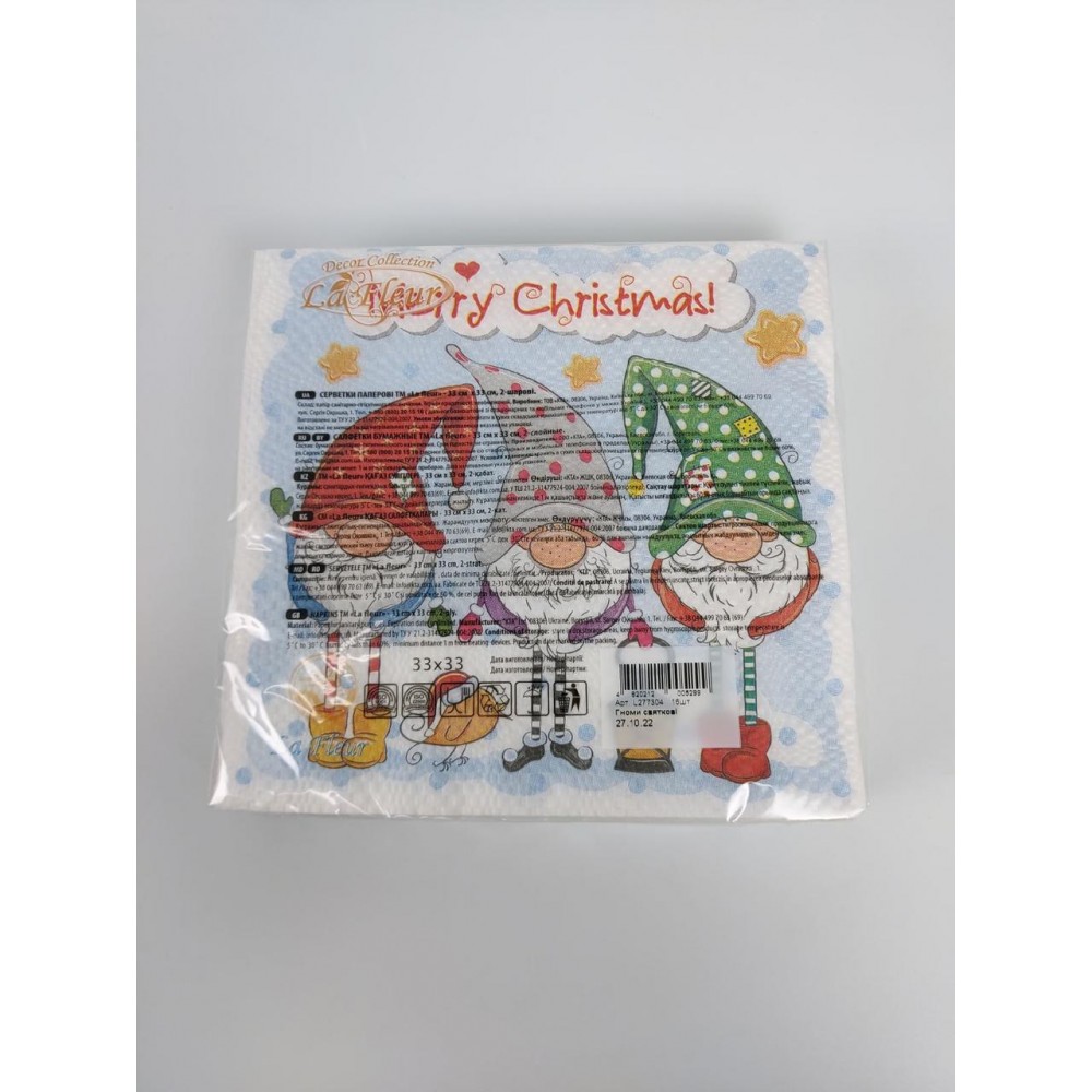 Новогодняя салфетка размер ЗЗхЗЗ 16шт La Fleur "Праздничные Гномы" (1 пачка)