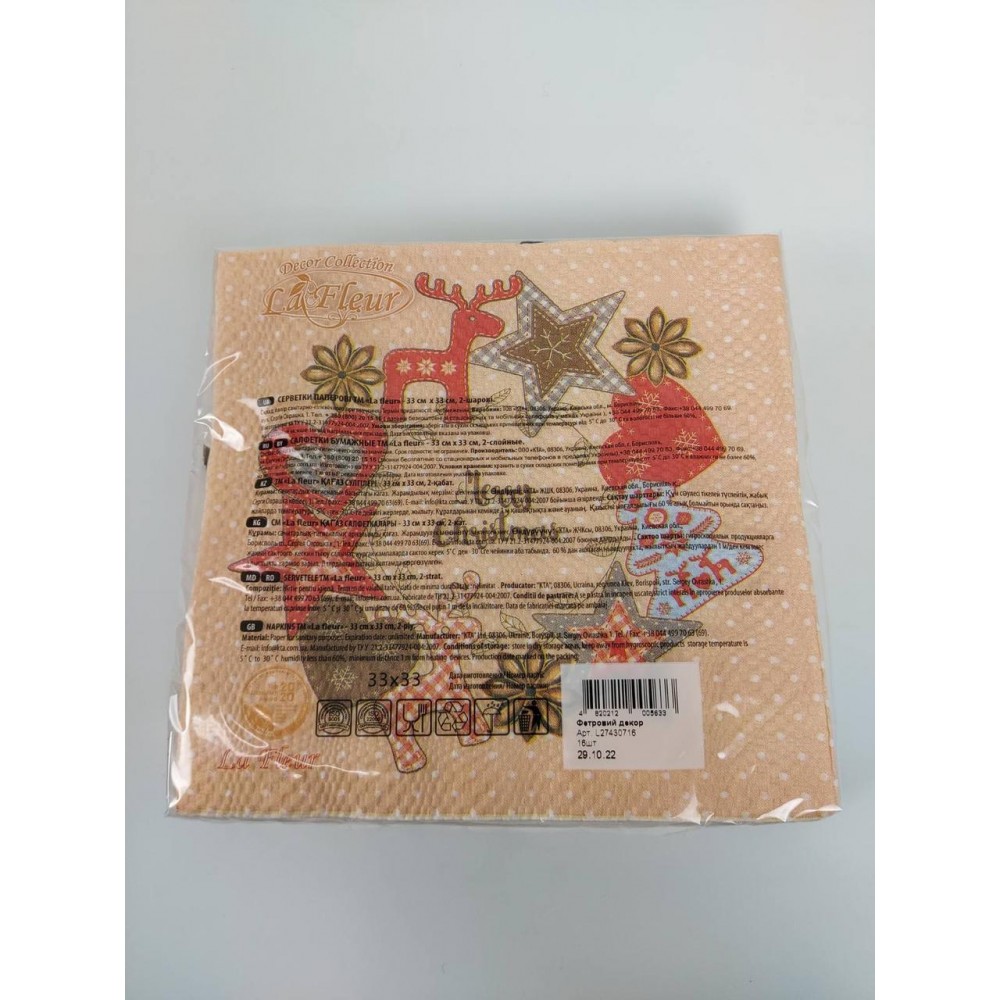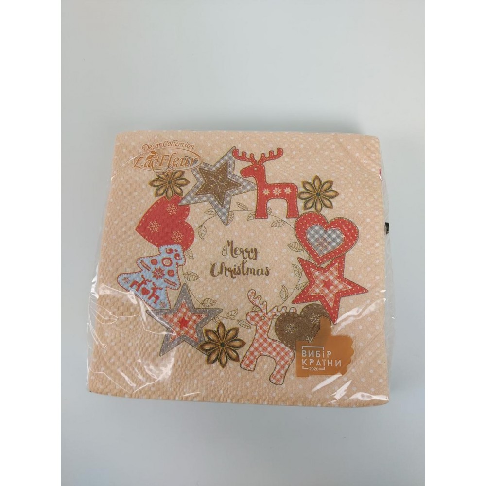 Новогодняя салфетка размер ЗЗхЗЗ 16шт) La Fleur "Винтажная елка" (664) (1 пачка)