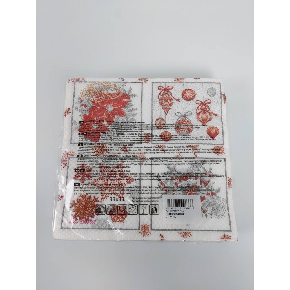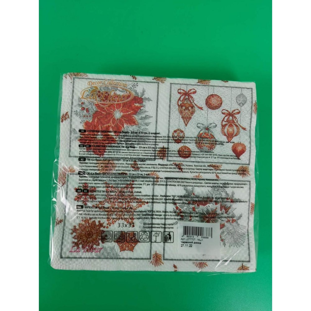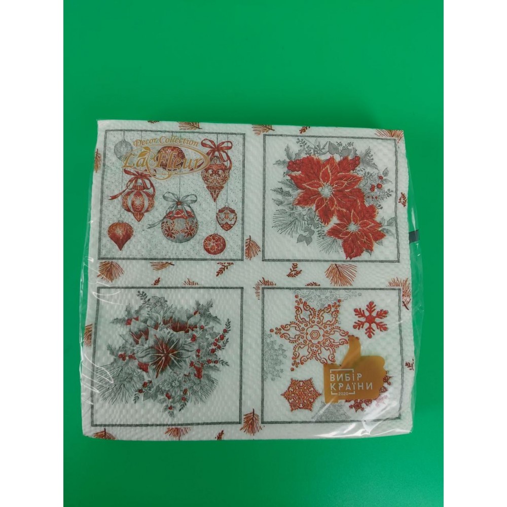 Ассортимент салфеток на сегодняшний день самый большой на украинском рынке. В наличии всегда есть множество салфеток с различными рисунками, праздничные салфетки, свадебные салфетки, салфетки ко дню рождения, новогодние и пасхальные салфетки. В линейке есть также самый большой ассортимент однотонных салфеток на любой цвет.