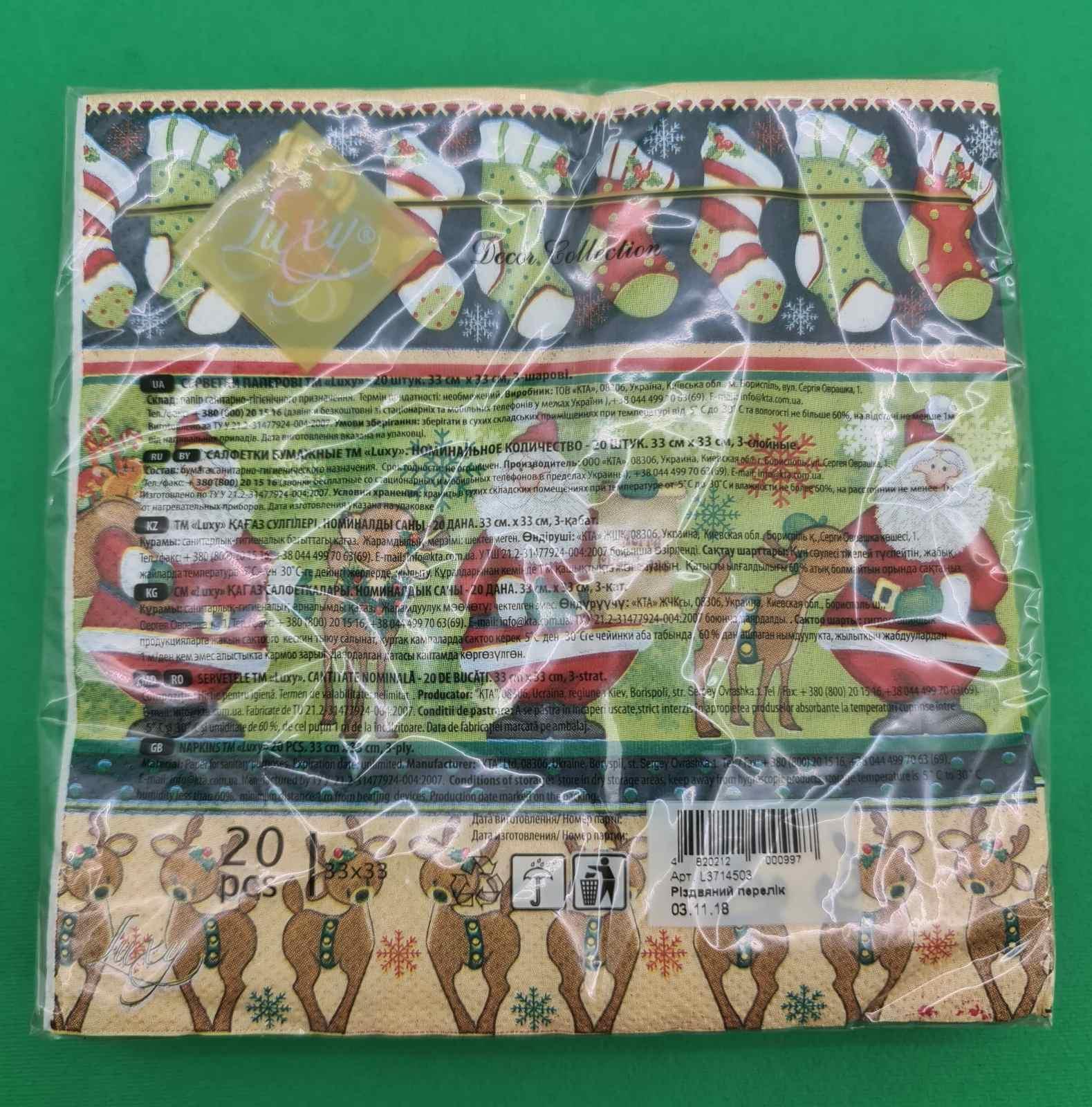 Новогодняя салфетка (ЗЗхЗЗ, 20шт) LuxyНГ Рождественский пересчет(1239) (1 пачка)