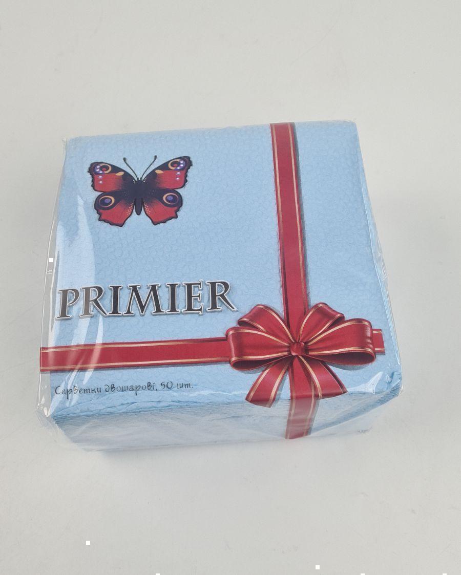 Одноразовая Cалфетка 50лист Премьер 2-ух слойные Голубая 33х33 (10 пачка)