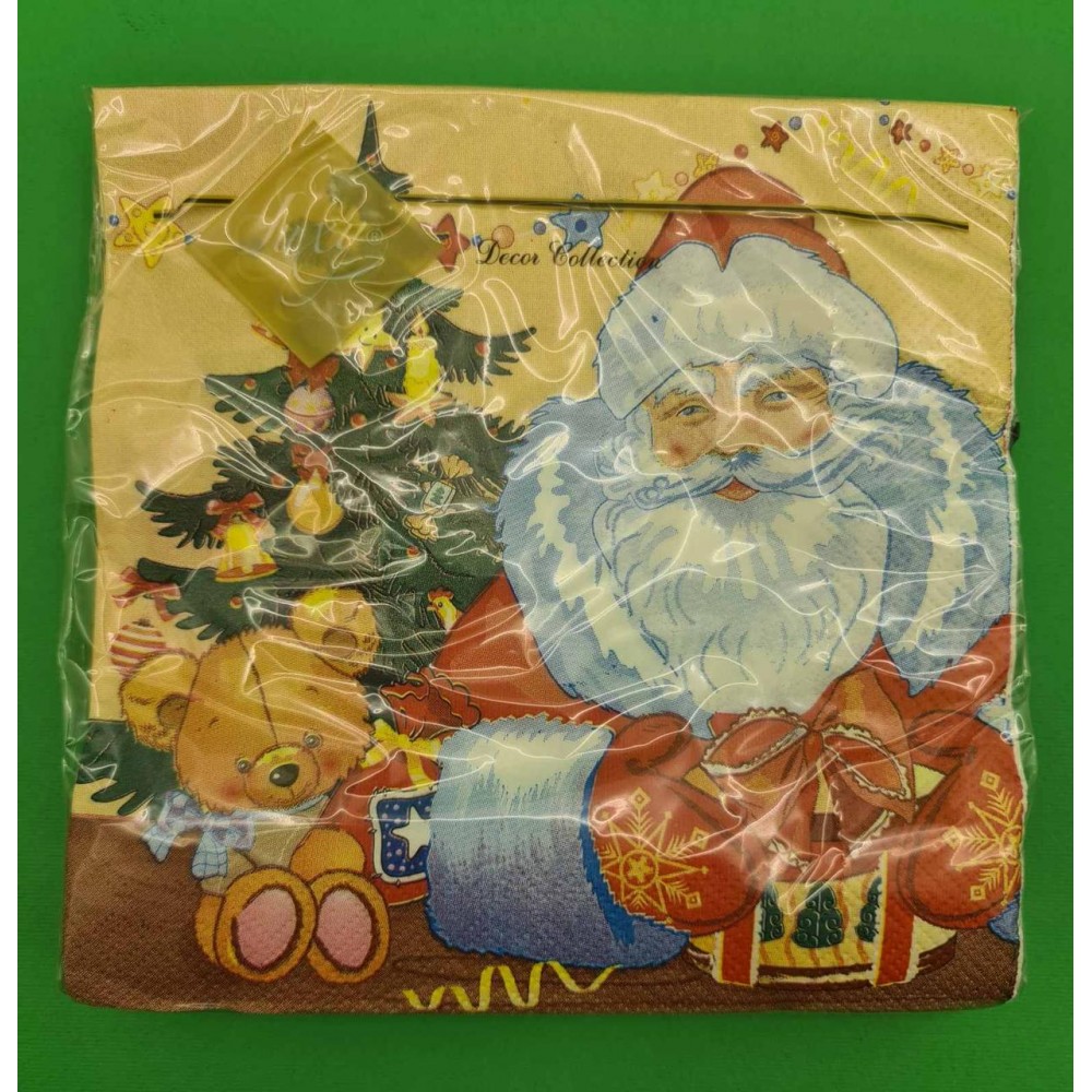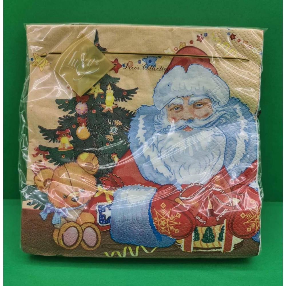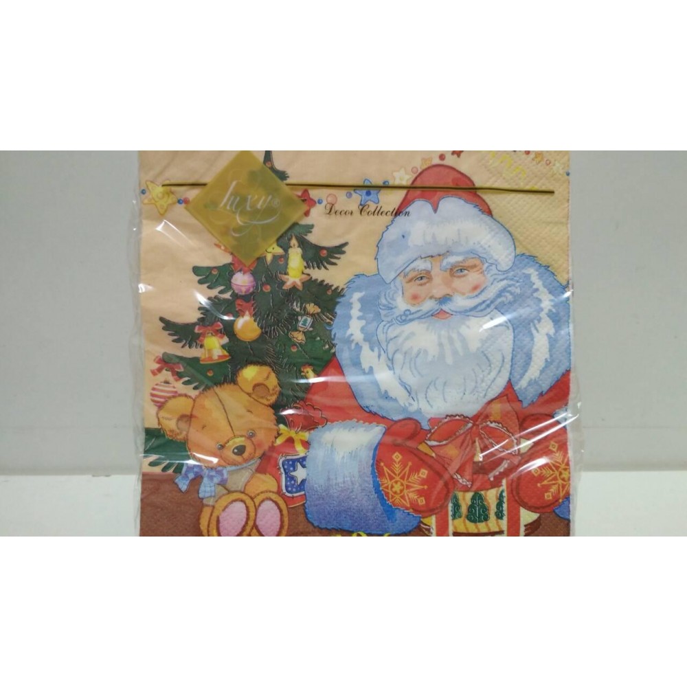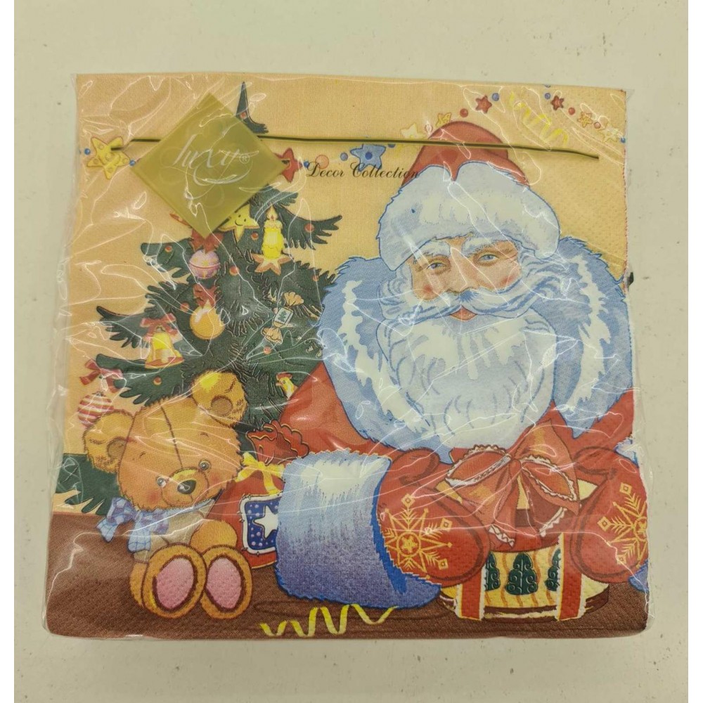 Праздничная салфетка (ЗЗхЗЗ, 20шт) LuxyНГ Дед мороз и медвежонок(1230) (1 пачка)