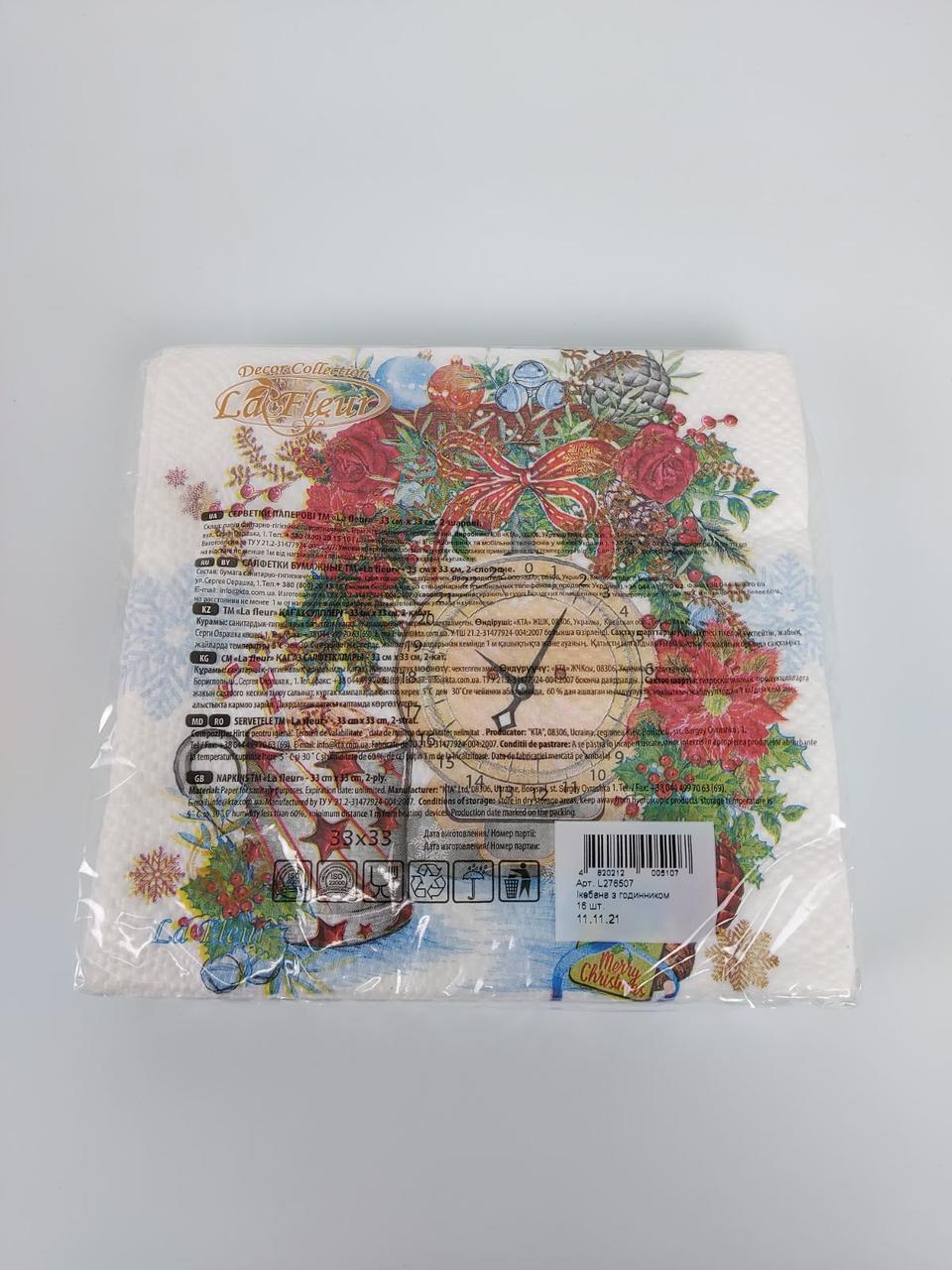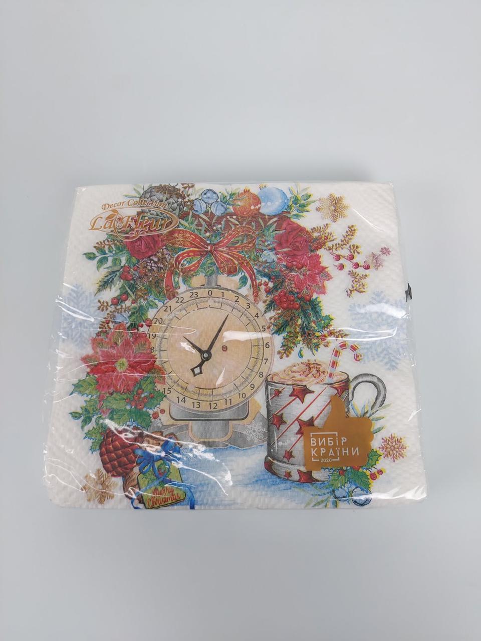Салфетка новогодняя размер ЗЗхЗЗ 16шт La Fleur "Икебана с часами" (107) (1 пачка)