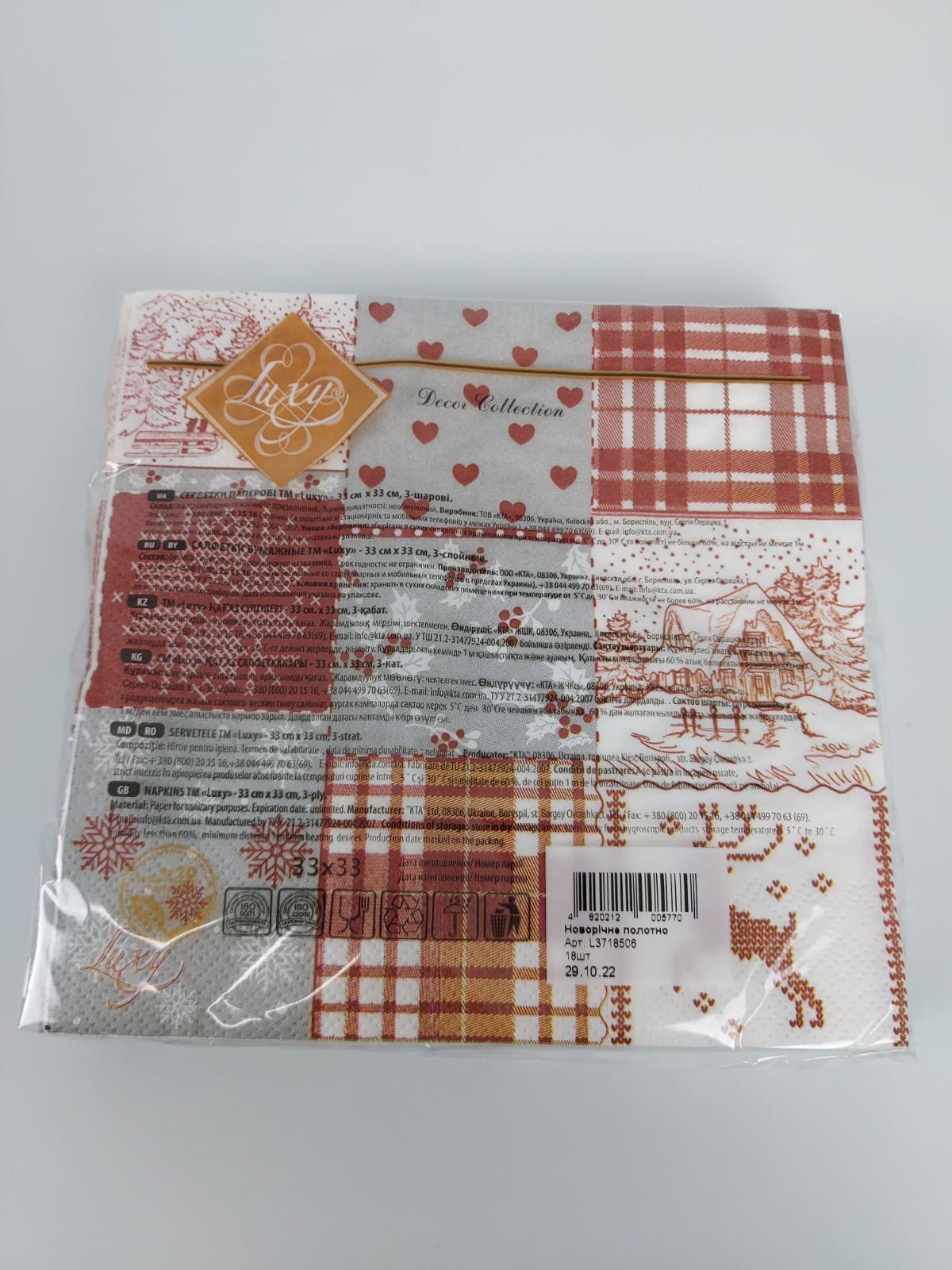Салфетки бумажнае новогодние(ЗЗхЗЗ, 18шт)"Новогоднее полотно" Luxy (1 пачка)
