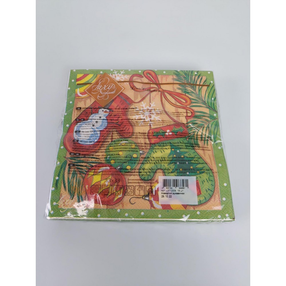 Салфетки бумажнае новогодние(ЗЗхЗЗ, 18шт)"Новогодние перчатки" Luxy (1 пачка)