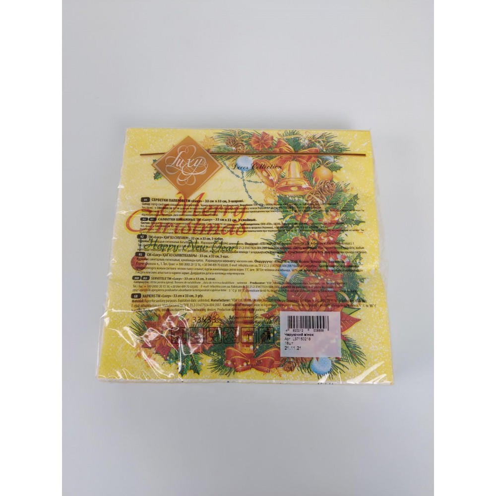 Салфетки бумажнае новогодние(ЗЗхЗЗ, 18шт)"Волшебный венок " Luxy (1 пачка)