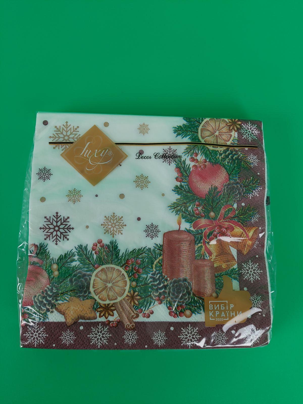 Салфетки бумажнае новогодние(ЗЗхЗЗ, 18шт)"Запах Рождества бордо" Luxy (1 пачка)
