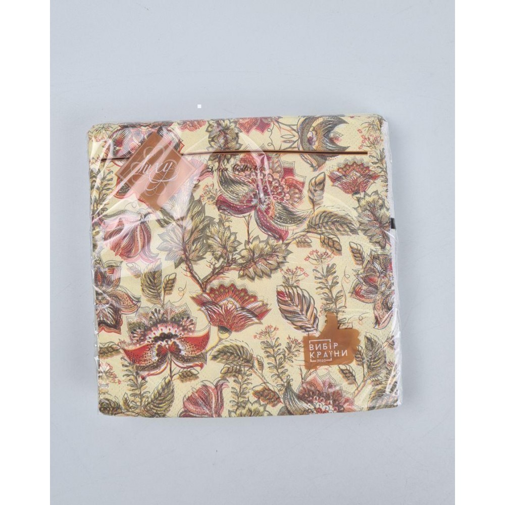 Ассортимент салфеток на сегодняшний день самый большой на украинском рынке. В наличии всегда есть множество салфеток с различными рисунками, праздничные салфетки, свадебные салфетки, салфетки ко дню рождения, новогодние и пасхальные салфетки. В линейке есть также самый большой ассортимент однотонных салфеток на любой цвет.