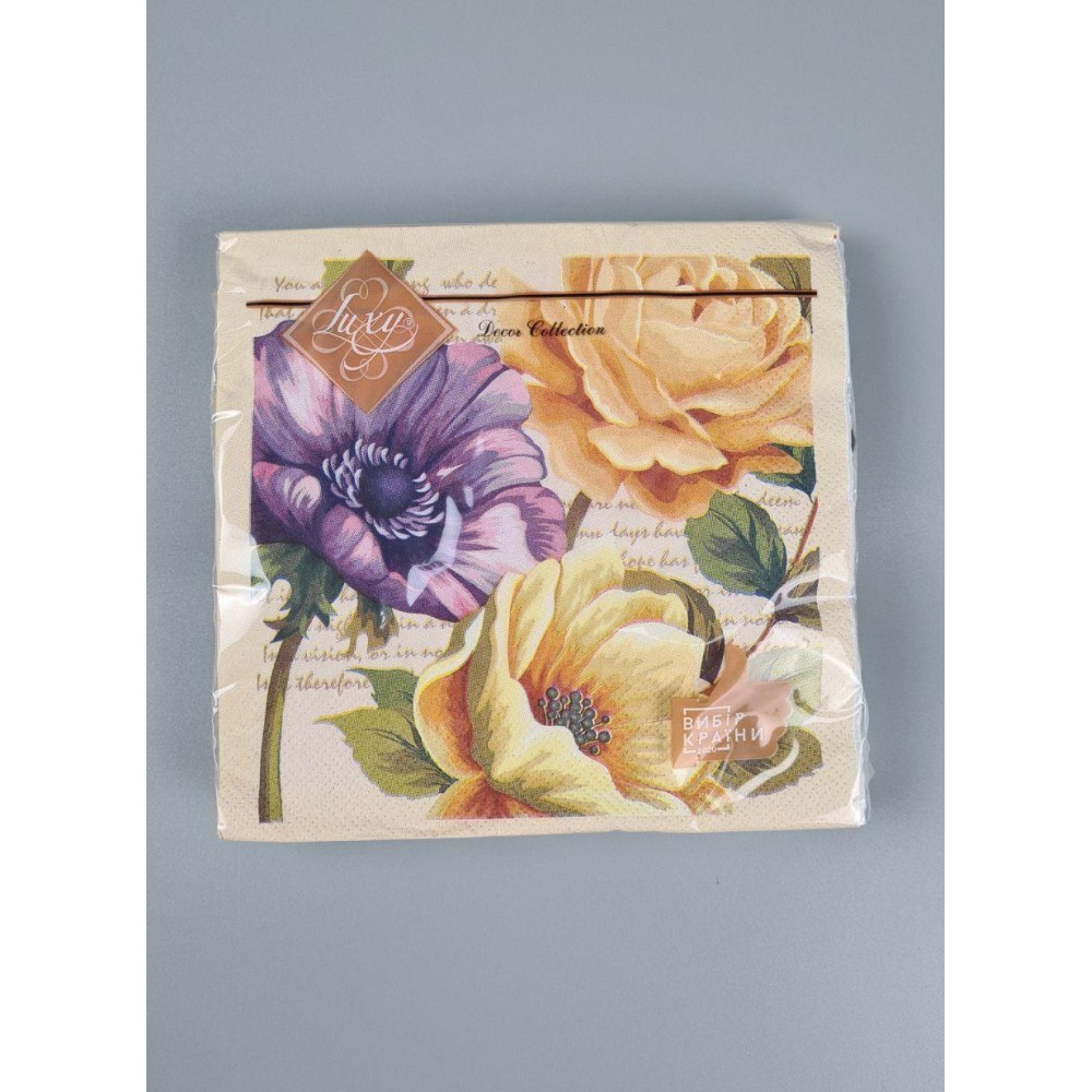 Салфетки бумажнае (ЗЗхЗЗ, 18шт)"Изысканные цветы" Luxy (1 пачка)