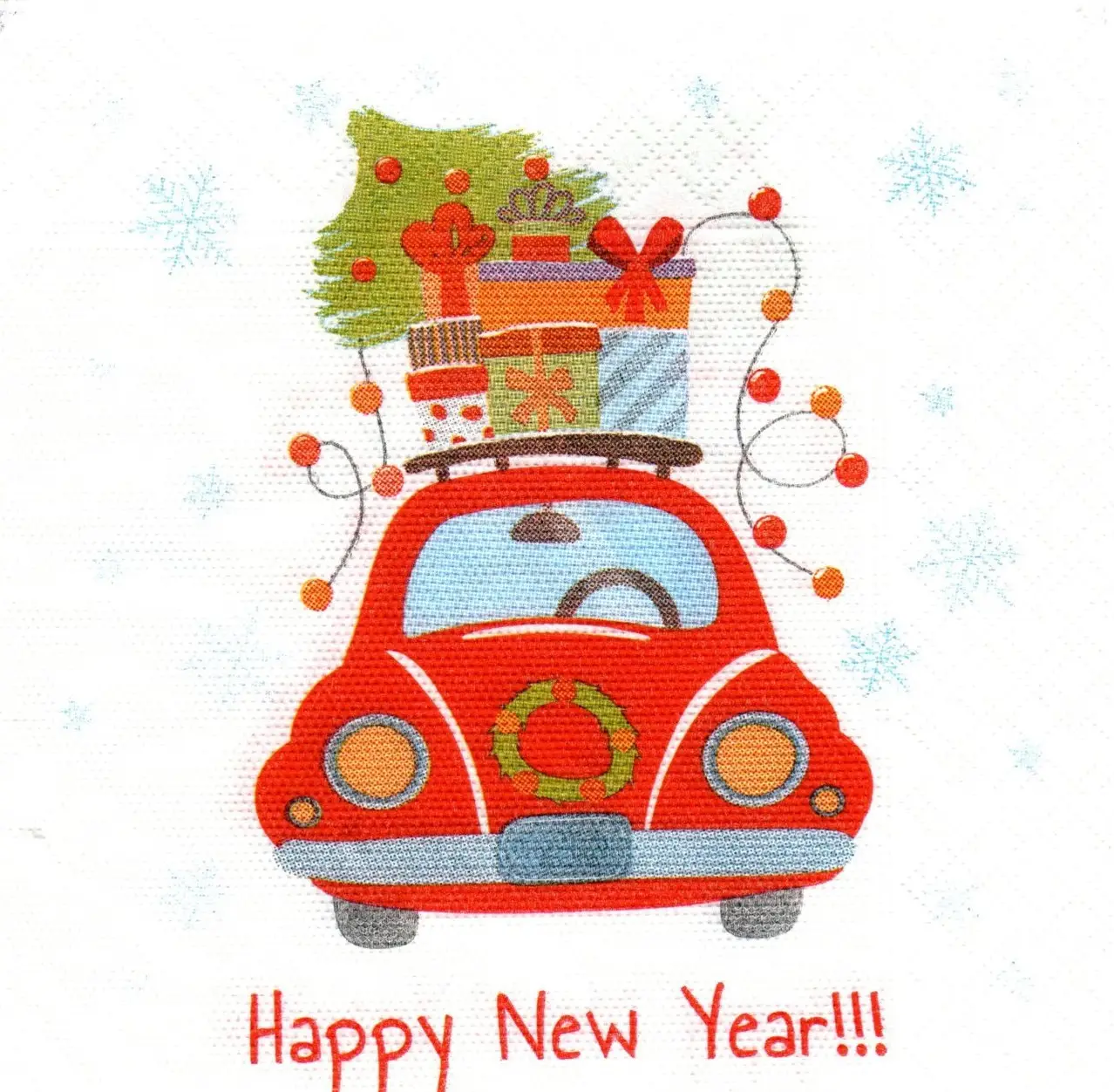 Салфетки бумажнае новогодние(ЗЗхЗЗ, 18шт)"Новогоднее полотно" Luxy (1 пачка)