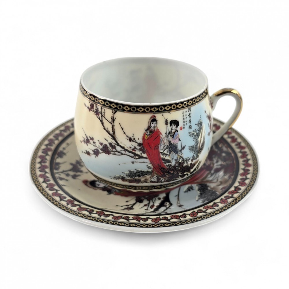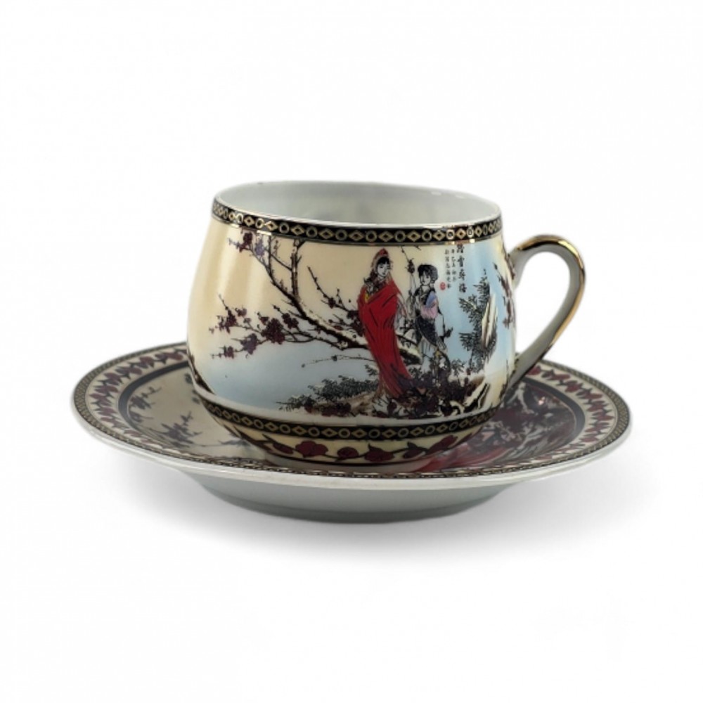 Сервиз фарфор (SCS102) 1 чашка+1 блюдце Сакура (110 мл)(h-5,2см, d-5,3см, блюдце d-11см)