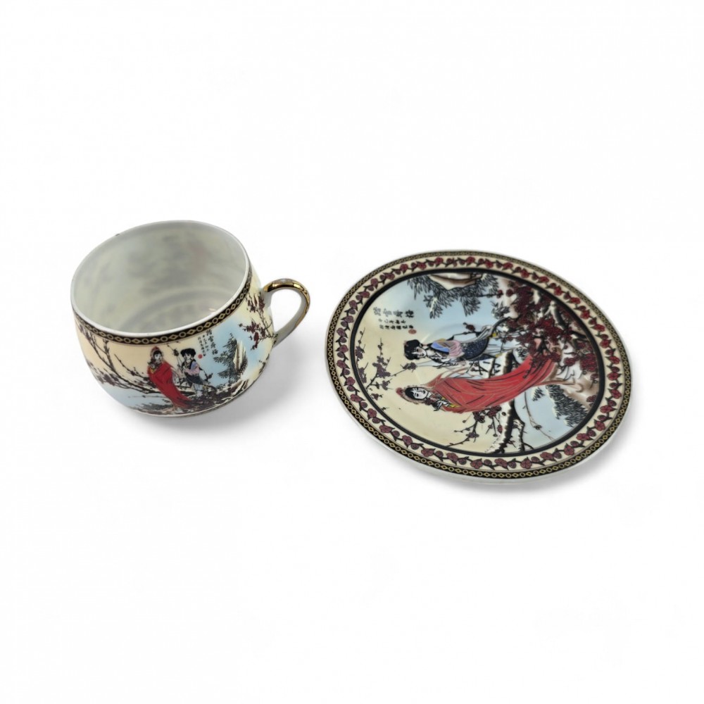 Сервиз фарфор сердце (2JBS140) 2 чашки +2 блюдца Гейша (210 мл)(h-6см,d-10см,d блюдца-15 см)