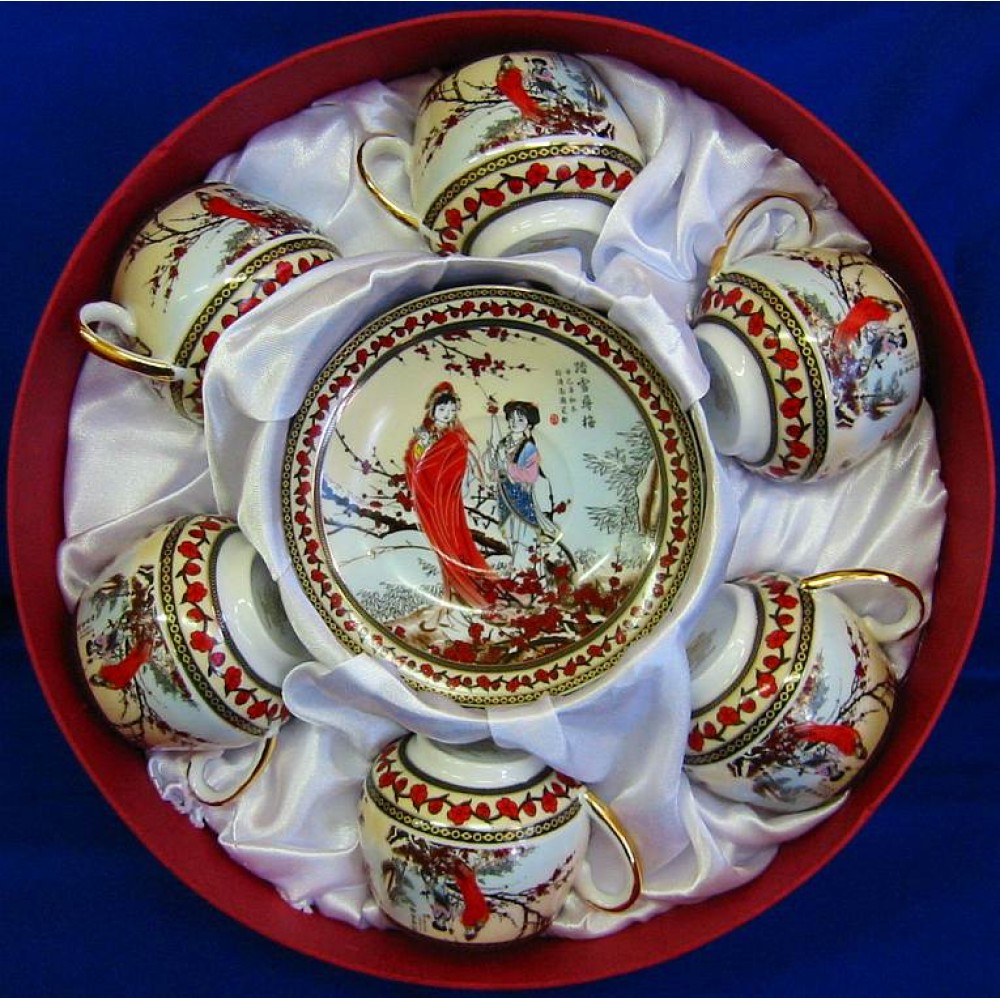 Сервиз круглый фарфор (110 мл)(6SCS102) 6 чашек+ 6 блюдец "Сакура" (h-5,5см, d-5см,d блюдца 11 см)