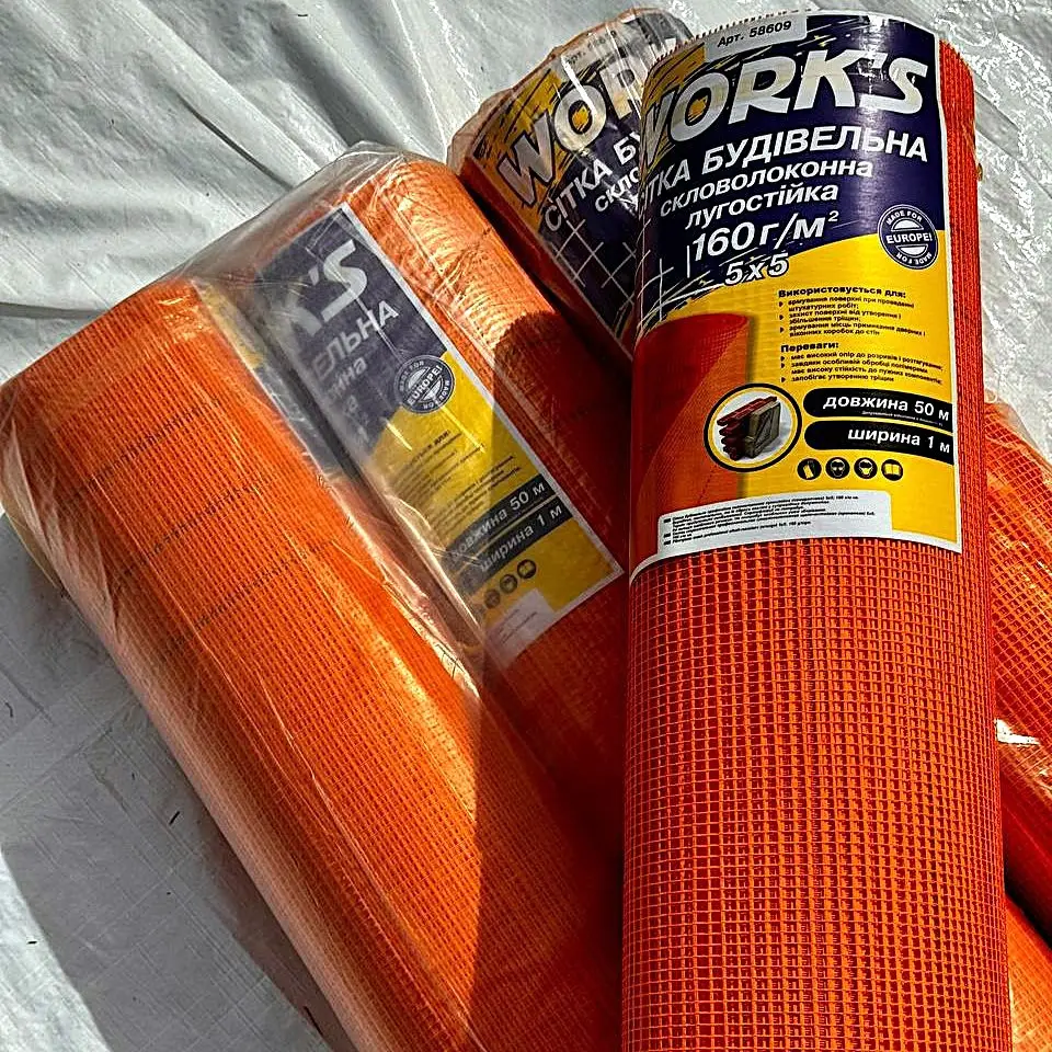 Сетка фасадная 1х50м, 145г/м2 (5х5мм) "Works" - строительная, штукатурная, стекловолокно